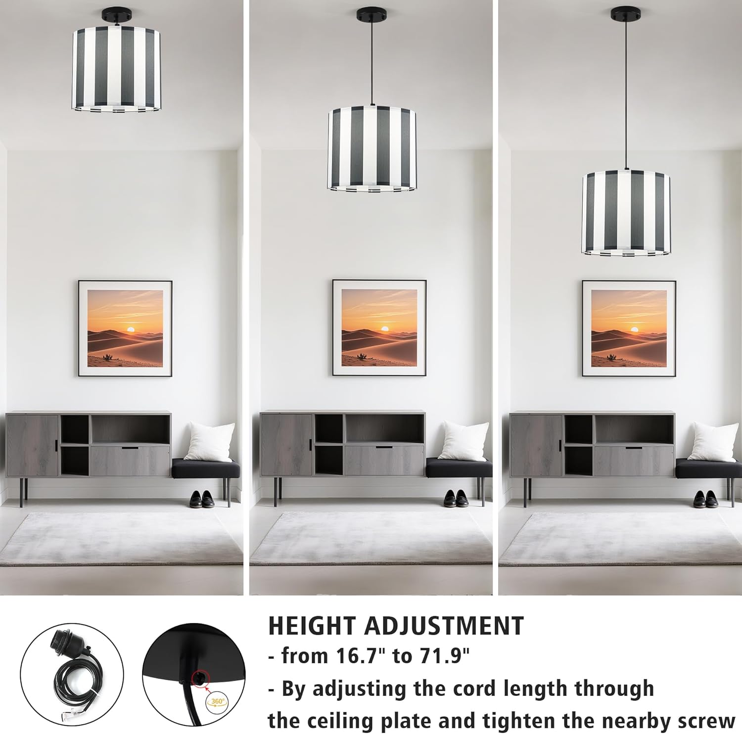 | Other Special Features of the Product | Adjustable Height: 16.7"–71.9" customizable drop, Dimmable Compatible: Works with dimmable bulbs & (Excluded), Multi-Ceiling Adaptable: Flat, sloped & vaulted ceilings |
