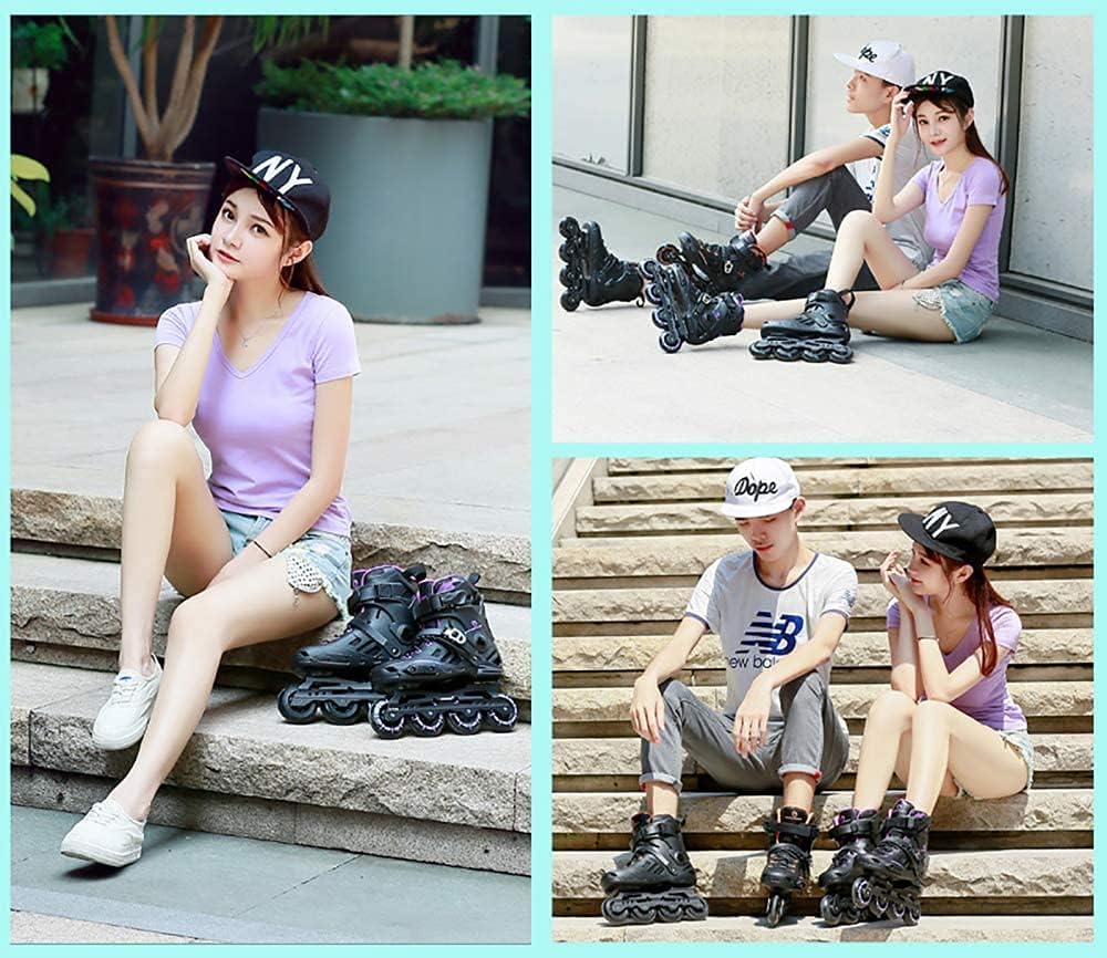 Summer roller skates!Professional + comfortable + safe + cool*High-Strength aluminum alloy bracket*Super breathable (breathable mesh fabric + windproof)*High elastic wear-Resistant pu wheel*High strength pp material*Anti-Wear sheet*Shock absorberProfessional inline skatesThe wheels have two different sizes: [35-39] 72-76-76-72mm, [40-44] 76-80-80-76mm. the design of two big wheels and two small wheels makes it easier for players to perform more difficult actionsNo brake moduleIf you are a fan of skates, maybe you should try to stop exercising without relying on brake pads, learn other ways to stop exercising, stop exercising in t, stop plowing, stop hockey and so on. This will bring you more fun.●ServiceWe really care about your customer experience and product experience. We are 100% committed to your complete satisfaction.If you have any questions or problems about our services or products, please feel free to contact us. Our customer support team will be there to help you at any time.